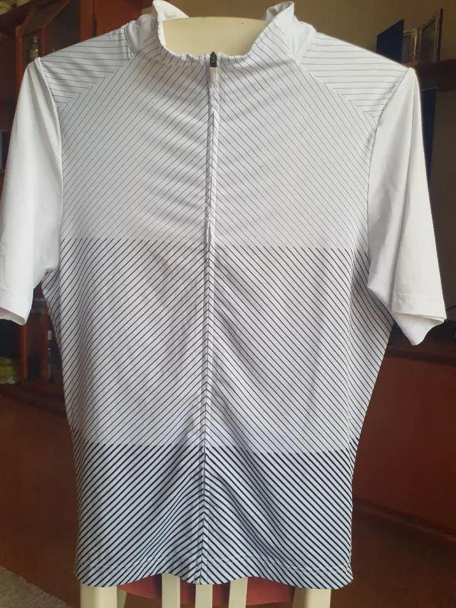 Detalles del productoMaillot de ciclismo de la marca Mavic, talla L. Diseño moderno con líneas diagonales en blanco y negro.
