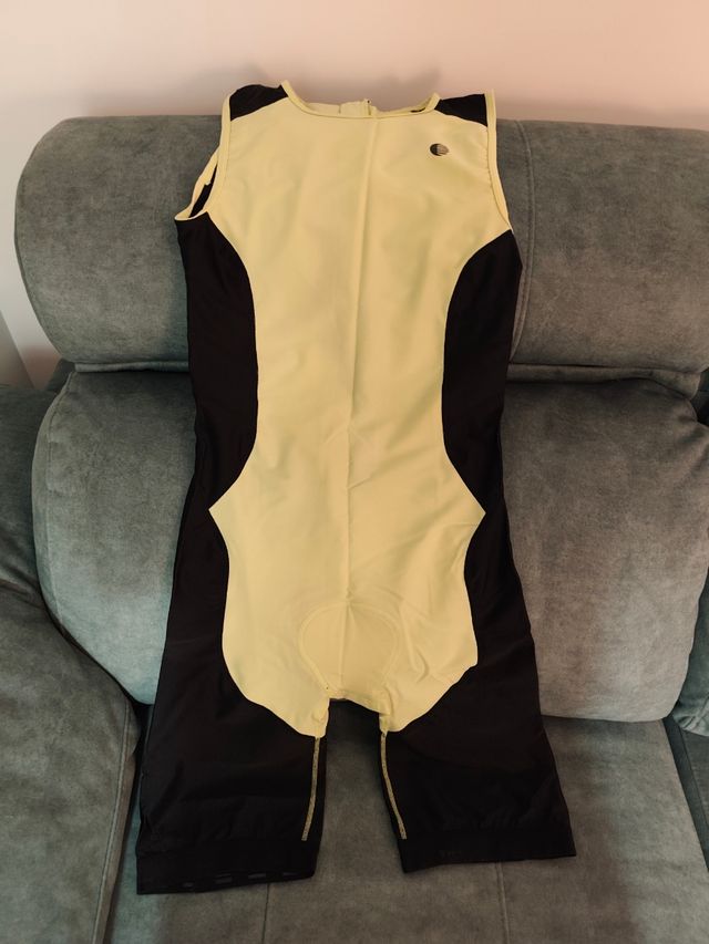 Detalles del productoMaillot o tritraje de una pieza, ideal para triatlón y ciclismo. Diseño sin mangas con paneles laterales en negro y zona central en color amarillo pálido.