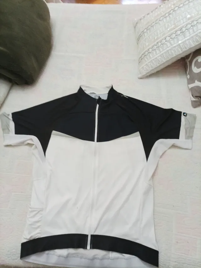 Detalles del productoMaillot de ciclismo de manga corta para hombre, ideal para el verano. Diseño bicolor en negro y blanco. Btwin alta gama.