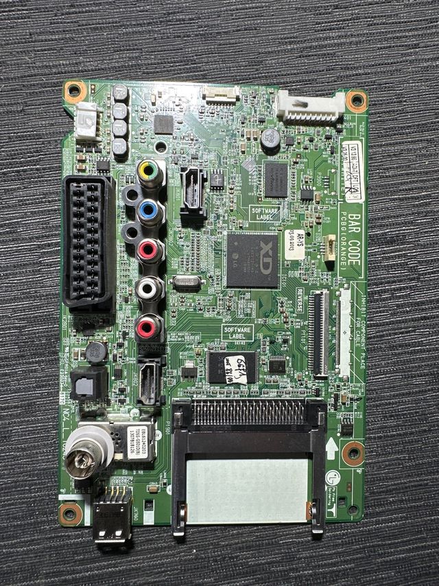 Sacada de televisor LG 32LN540B con pantalla rota - Modelo: PCBG(ORANGE) P3900 - Código de barras: V0 1386 AD DFT LO - Etiqueta de software: AR-YS 03.09.2013