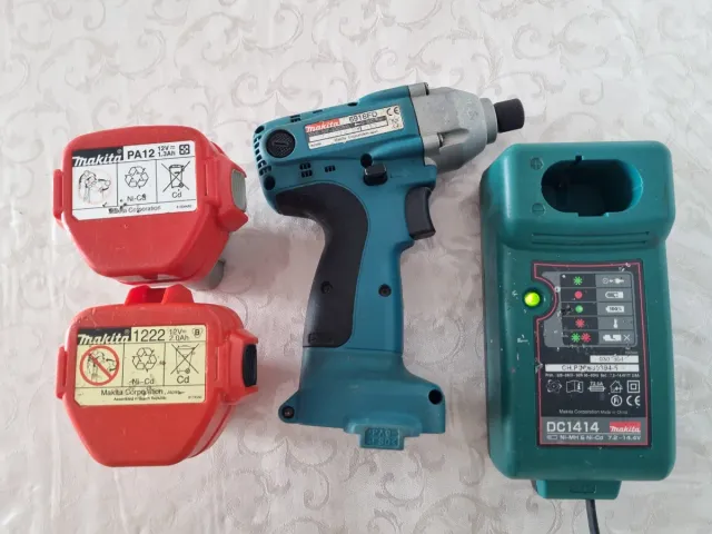 - Incluye dos baterías Makita PA12 de 12 voltios (1,3AH) fonciona pero no dura mucho y Bateria Makita 1222 De 12voltios (2,0AH) fonciona y dura bien