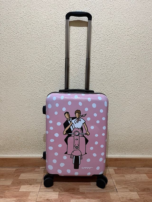 Maleta de viaje rosa con lunares blancos