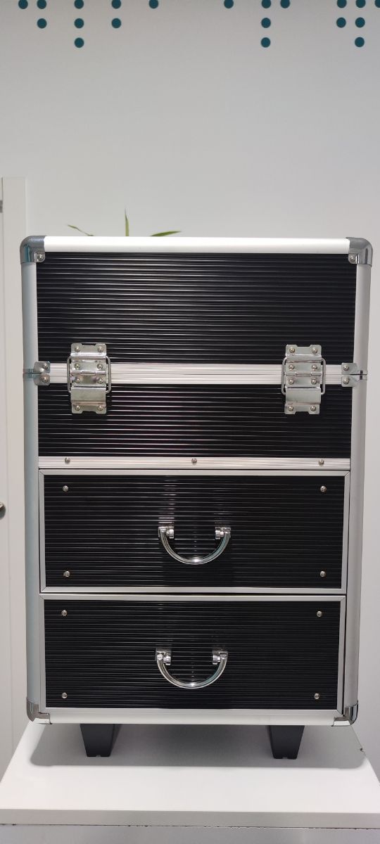 Detalles del productoMaleta de estética profesional con acabado en aluminio y detalles en negro. Cuenta con dos cajones con tiradores metálicos y cierres de seguridad. NUEVO SIN USO.