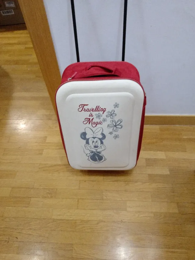 Adorable maleta de cabina con diseño de Minnie Mouse.