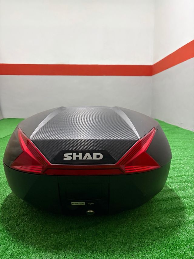 Maleta de moto SHAD con una capacidad de 48 litros. - Diseño moderno con detalles en gris. - Color principal negro.
