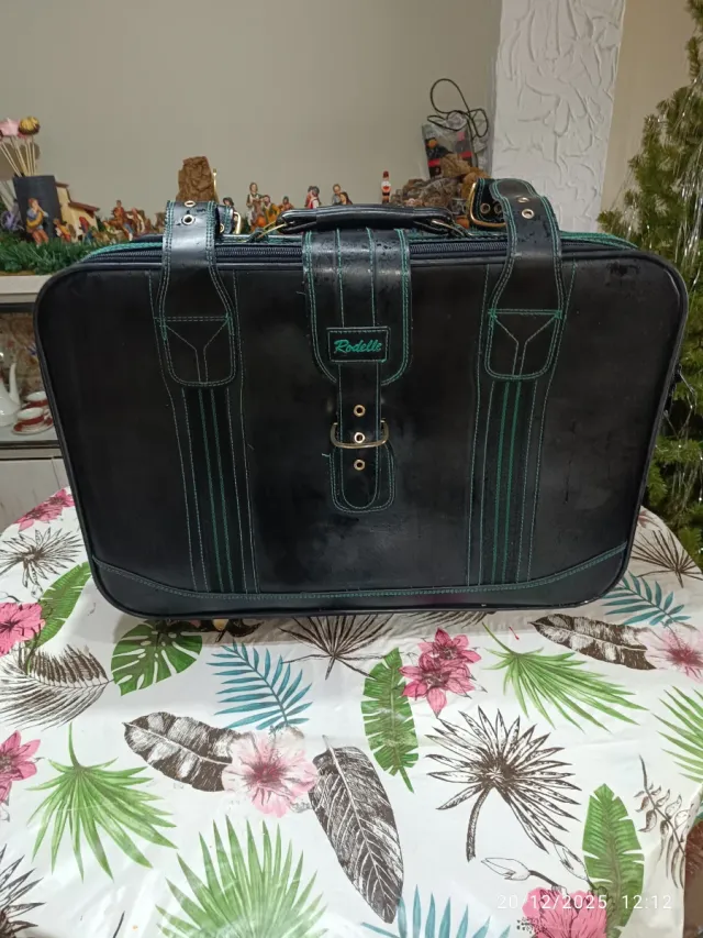 Maleta Rodelle Cuero Negra con Detalles Verdes