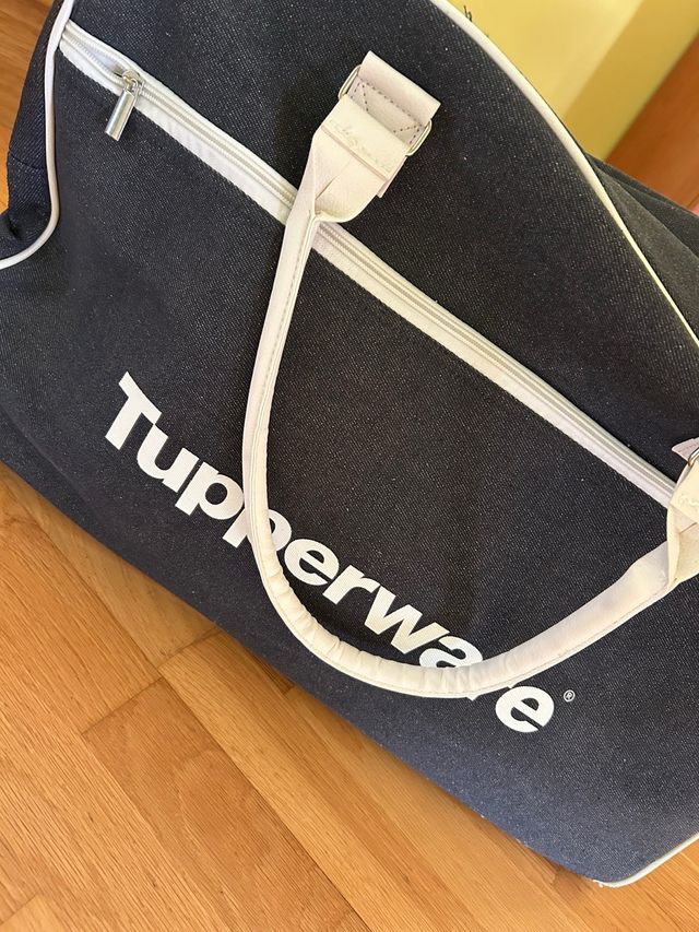 Maleta de tela resistente con el logo de Tupperware. - Color azul oscuro. - Asas de mano. - Cierre de cremallera.