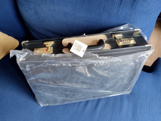 Maletín antiguo con cerradura numérica negro con un pequeño roce que se detalla en foto.