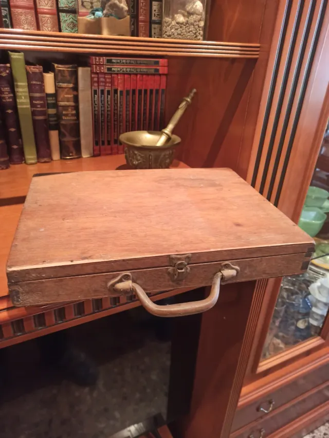 Detalles del productoMaletín de pintor antiguo, fabricado en madera y con cierre y asa en latón o bronce. Ideal para coleccionistas o como pieza decorativa.