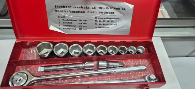 Detalles del productoMaletín de herramientas con carraca de 3/4 y 15 piezas.
