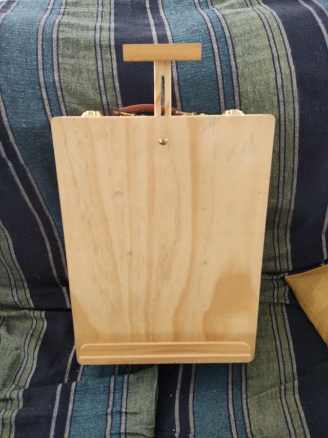 Detalles del productoMaletín de madera para llevar tus materiales de pintura. Es un soporte práctico y ligero, con caballete.