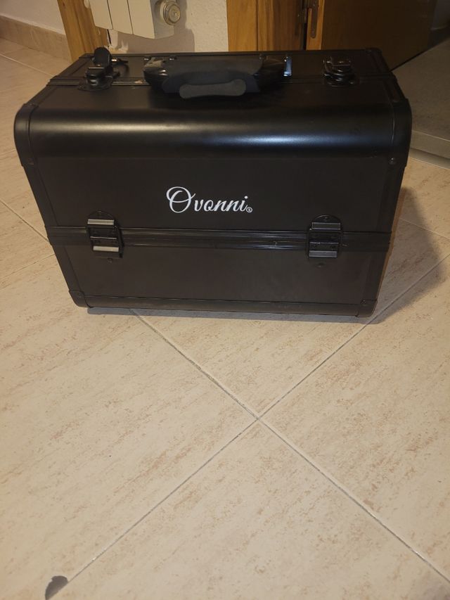 Maletín de maquillaje práctico y funcional con varios pisos y departamentos para tener bien organizados los productos de maquillaje y faciales.