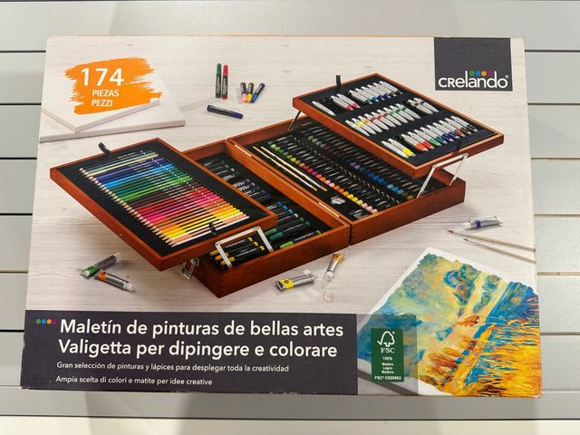 Detalles del productoMaletín de arte Crealando con 174 piezas para pintar y colorear.