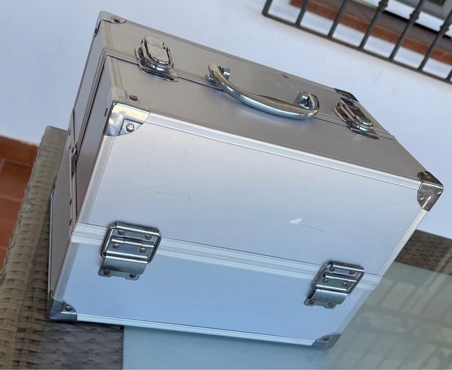 Maletín plateado con detalles metálicos y asa. - Esquinas reforzadas. - Cierres de seguridad.pinturas muy variadas, aunque faltan algunas 22cm de altura y 23X32