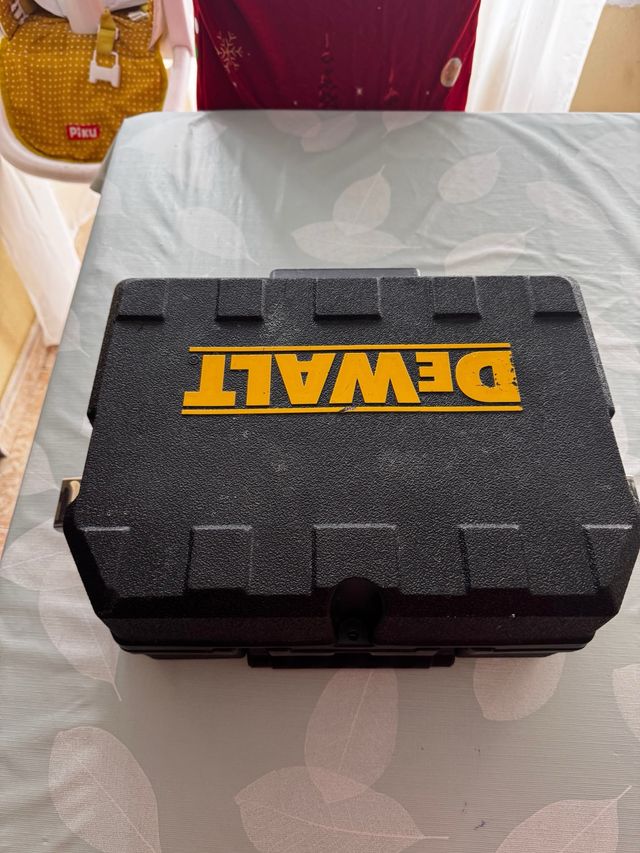 Maletín de almacenamiento DeWalt en color negro. - Diseño robusto y duradero. - Cierre de seguridad. - Asa para transporte.