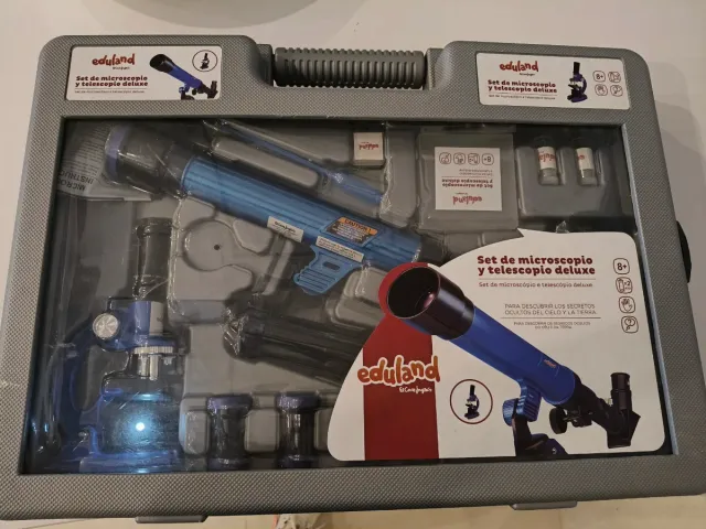 Set de microscopio y telescopio Eduland en un maletín. - Incluye microscopio y telescopio. - Maletín de transporte. - Edad recomendada: 8+ años