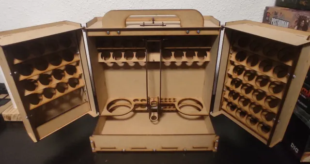 Detalles del productoMaletín de madera para organizar tus pinturas y accesorios de modelismo.