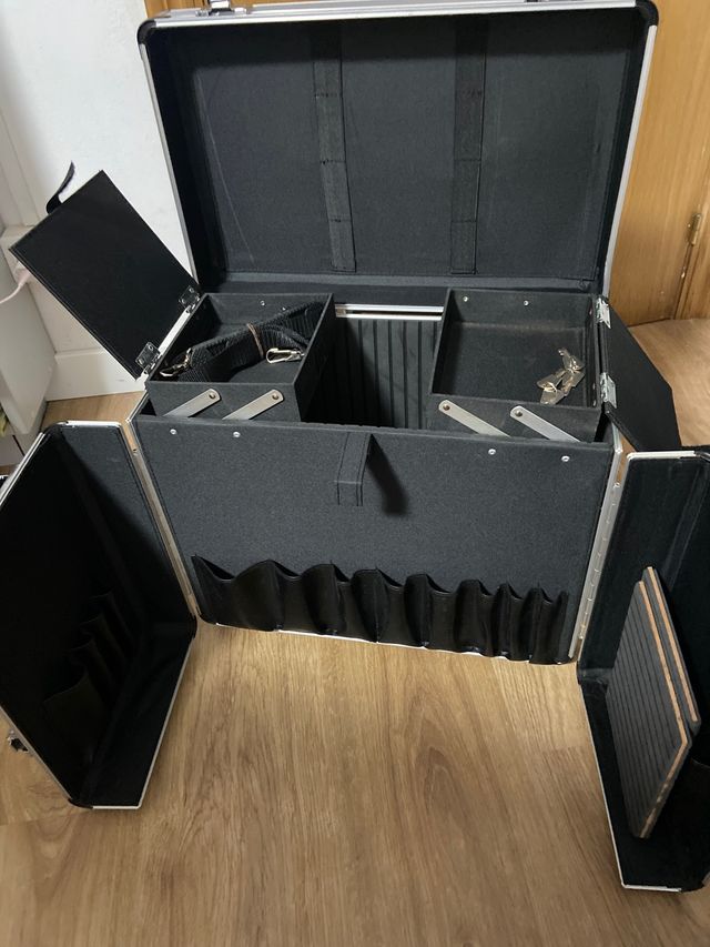 Maleta de maquillaje de aluminio profesional ,uñas,estetica nuevo,muchos departamentos con ruedas para transporte,grande 41x26x39