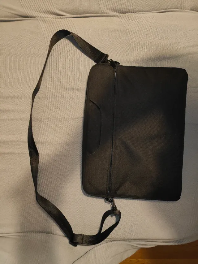 Detalles del productoMaletín de color negro para ordenador portátil. Cuenta con una correa ajustable para llevarlo cómodamente y asas escamoteables.