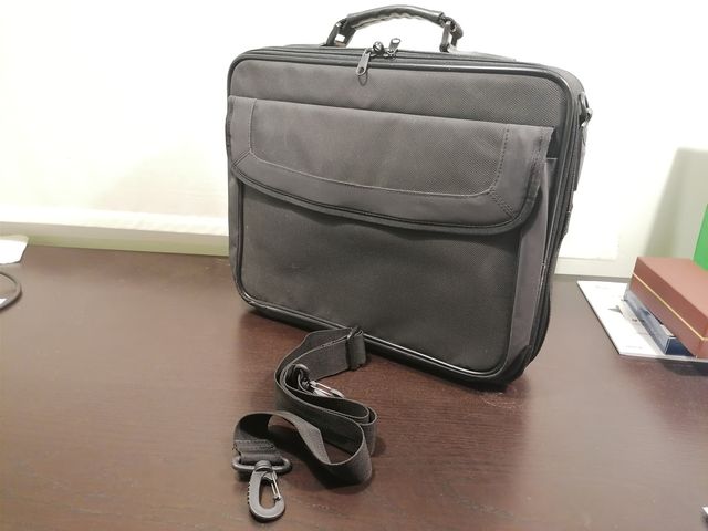 Detalles del productoMaletín negro Targus para portátil. Cuenta con un asa superior y una correa ajustable para llevarlo al hombro.