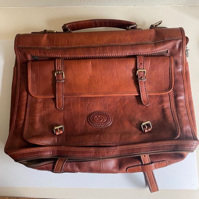 Bolsa viaje o maletín en 100% piel marrón. 49x39. Amplia capacidad y múltiples bolsillos con cremallera y pequeño candado de seguridad.