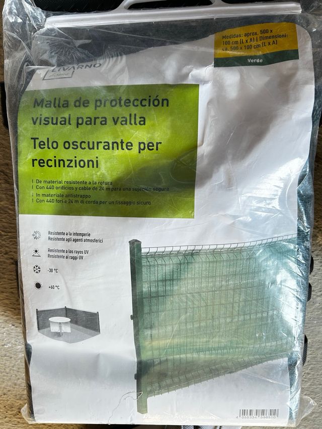 Detalles del productoMalla de protección visual para valla, color verde. Ideal para dar privacidad y proteger del sol.