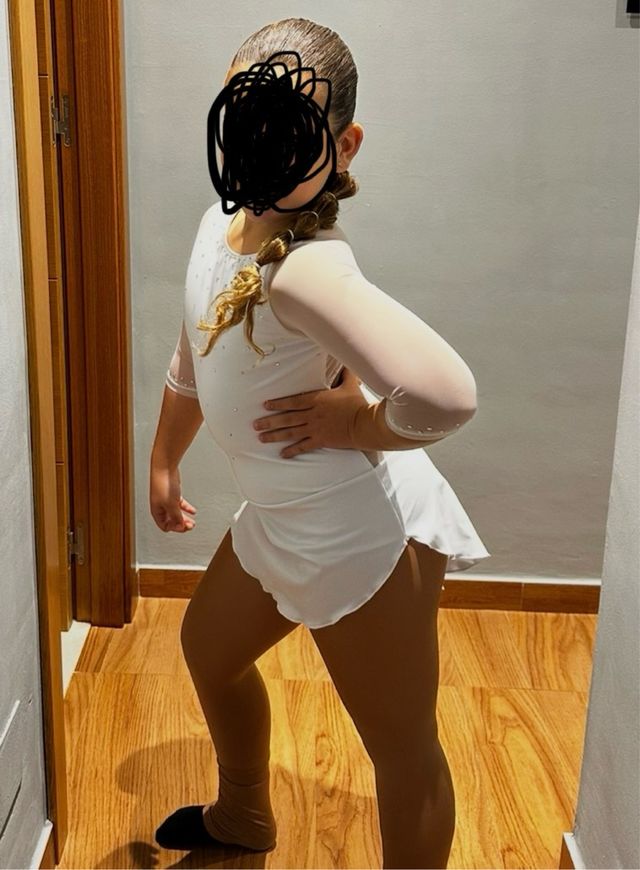 Detalles del productoMallas de patinaje artístico de color blanco, ideales para competiciones o entrenamientos.