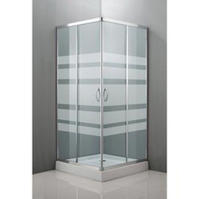 Mampara de ducha esquinera con plato. - Medidas de la mampara: 80x80 cm. - Diseño con líneas decorativas.