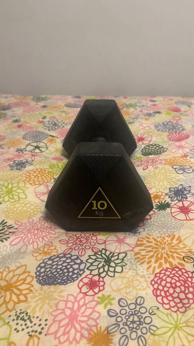 Mancuerna de 10 kg de la marca Domyos. Ideal para entrenamientos. - Peso: 10 kg - Color: Negro - Diseño hexagonal para mayor estabilidad