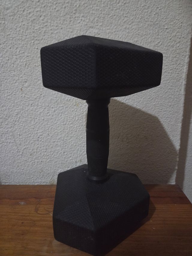 Detalles del productoMancuerna hexagonal de 10kg, ideal para tu entrenamiento. Es de color negro y tiene una textura agradable al tacto.