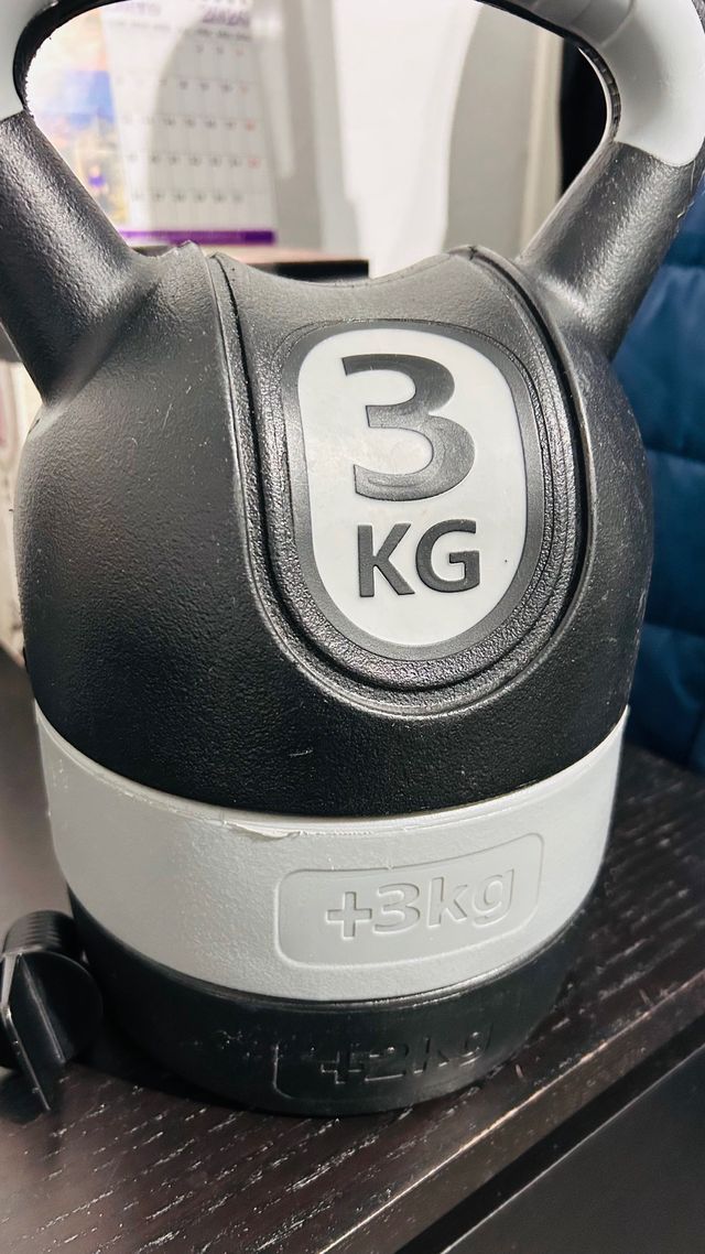 Mancuerna tipo kettlebell de 8 kg. Ajustable 3,5,6 y 8 kilos en la misma pesa rusa. Ideal para entrenar en casa