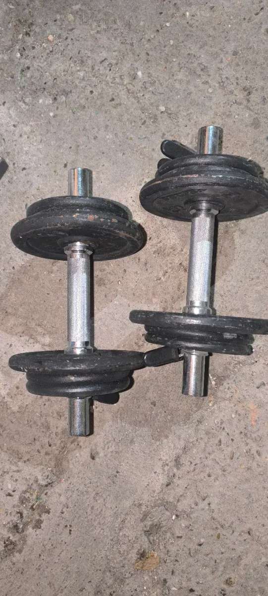 Detalles del productoPar de mancuernas de 10 kg cada una, ideales para entrenamientos en casa.