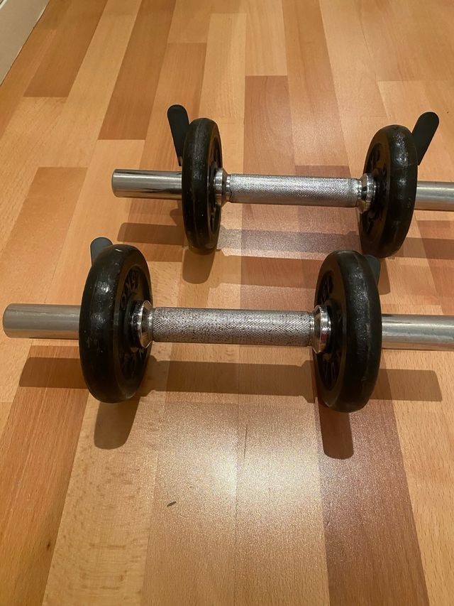 Par de mancuernas con discos de 1.5 kg cada una. - Discos de 1.5 kg. - Barra con agarre texturizado.