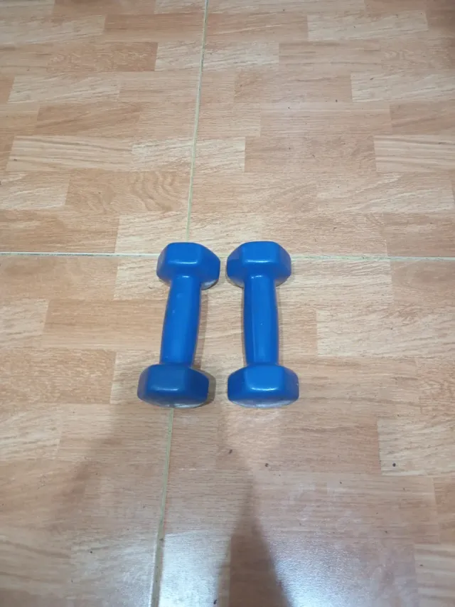 Par de mancuernas de color azul. - Diseño ergonómico para un agarre cómodo. - Ideales para ejercicios de fuerza y tonificación. (Precio negociable)