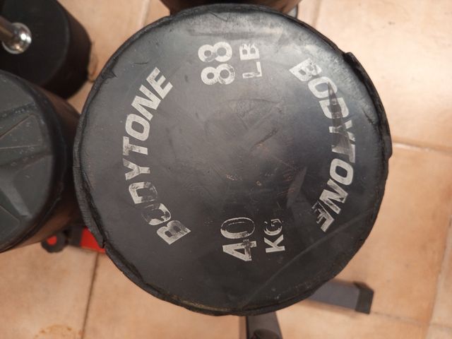 Par de mancuernas de 40 kg cada una, marca Bodytone. - Peso: 40 kg (88 lb). - Marca: Bodytone.