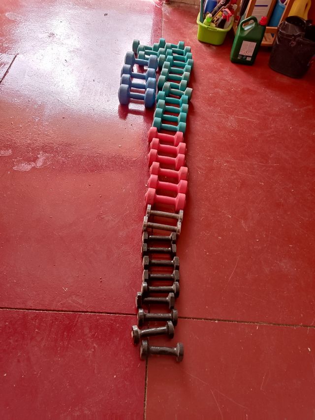 vendo 5 pares de mancuernas de 1 kg, 10 pares de 1,5 kg