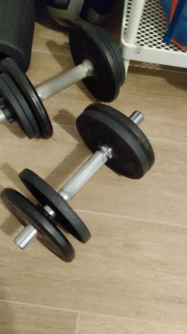 Detalles del productoSet de mancuernas con discos para entrenamiento.