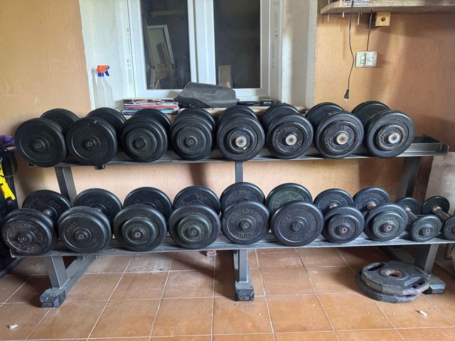 Mancuernero y mancuernas 2- 30 kg con banco .