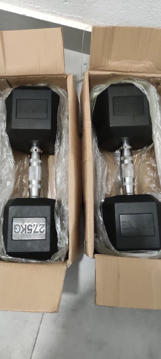 Detalles del productoMancuernas hexagonales de 27,5 kg caucho nuevas a estrenar en su caja .