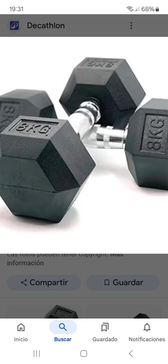 Detalles del productoPar de mancuernas HEXAGONALES de 8 kilos cada una, son nuevas sin estrenar