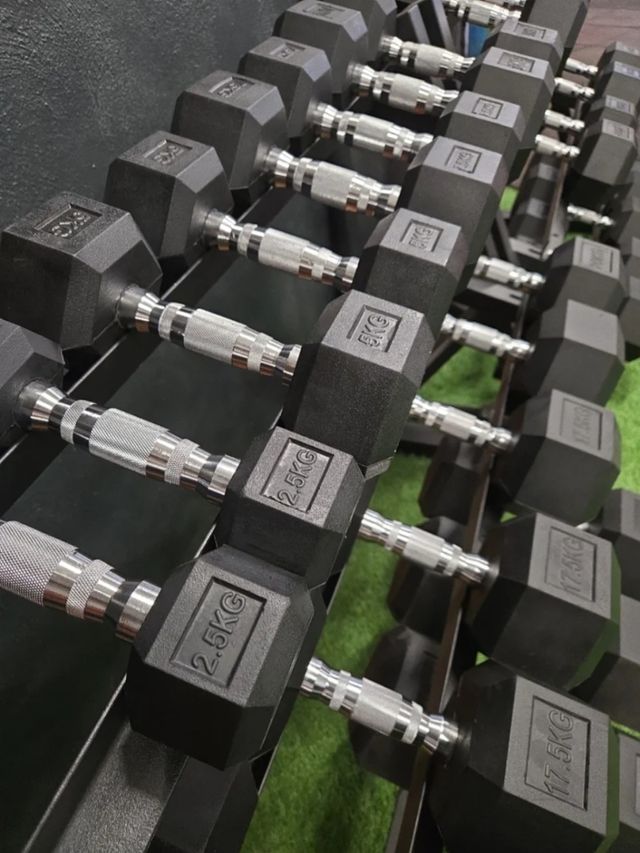 Detalles del productoMancuernas hexagonales de 2.5kg a 30 kg.