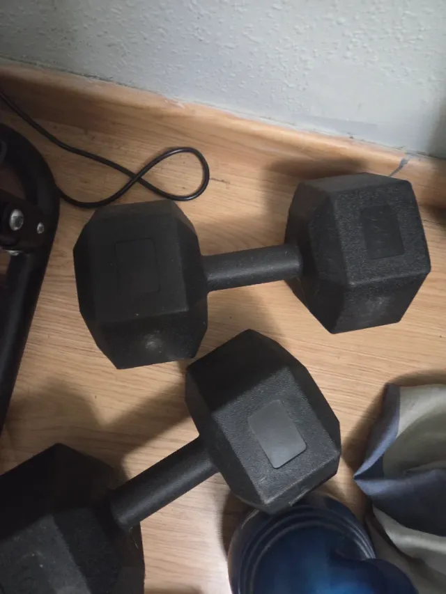 Par de mancuernas hexagonales de color negro. - Diseño hexagonal para evitar que rueden. - Empuñadura texturizada para un mejor agarre.