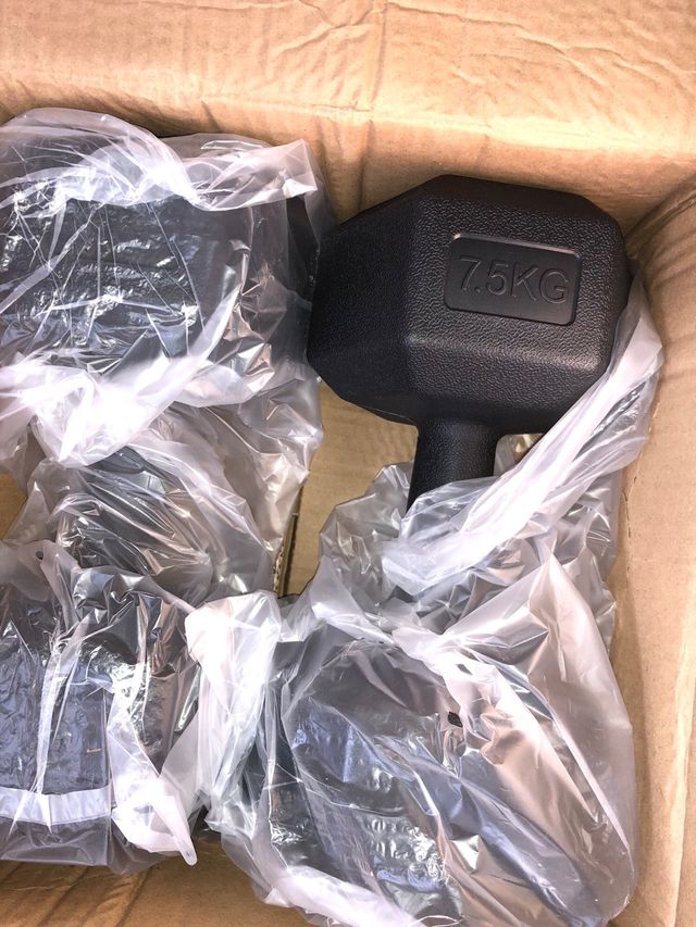 Detalles del productoPar de mancuernas de 7.5 kg cada una, perfectas para entrenar en casa. Son nuevas en su embalaje original. Las acabo de recibir de diferente tamaño al que pedí.