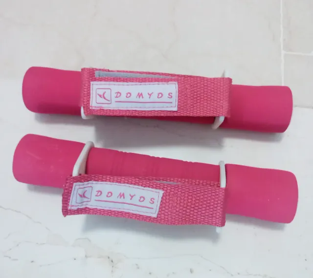 Par de mancuernas rosas de la marca Domyos, ideales para ejercicios de tonificación.