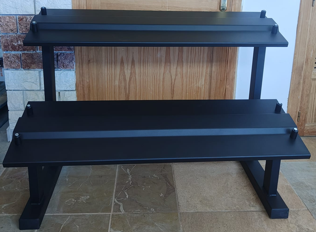 Detalles del productoMancuernero profesional de dos alturas, con capacidad para 8 pares de mancuernas. Fabricado íntegramente en España con materiales de alta calidad. Estructura robusta en tubo de acero cuadrado de 3 mm de grosor, que garantiza una excelente estabilidad y resistencia incluso con cargas pesadas. Medidas totales: 1200×870×590 mm. Acabado con pintura negra metalizada resistente al uso intensivo y a la corrosión.