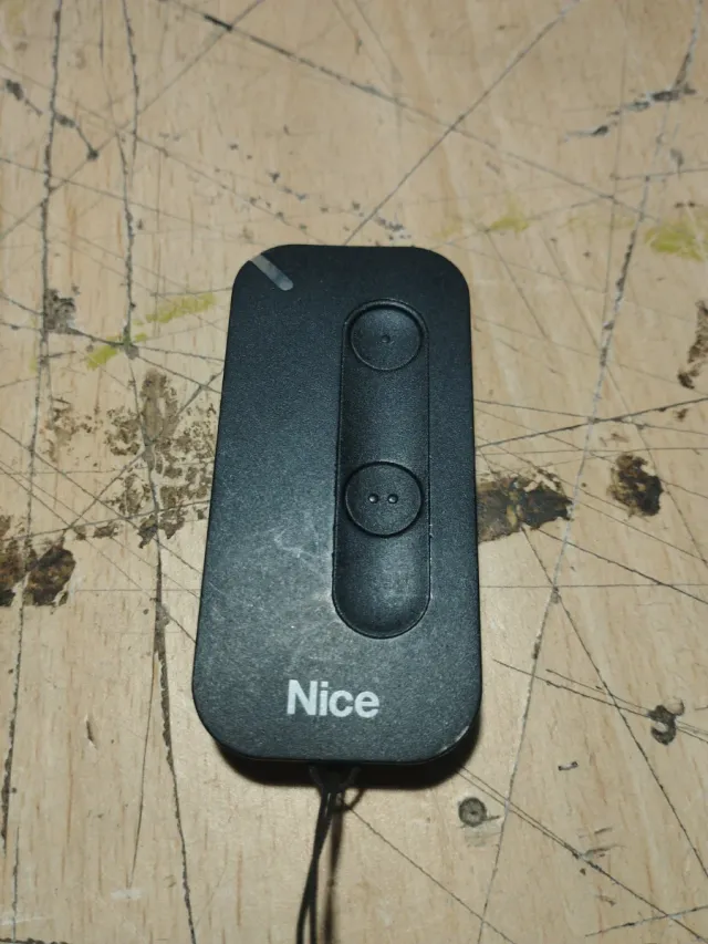 Mando a distancia de la marca Nice, ideal para puertas de garaje o parking. Diseño compacto y moderno. - Dos botones. - Color negro.