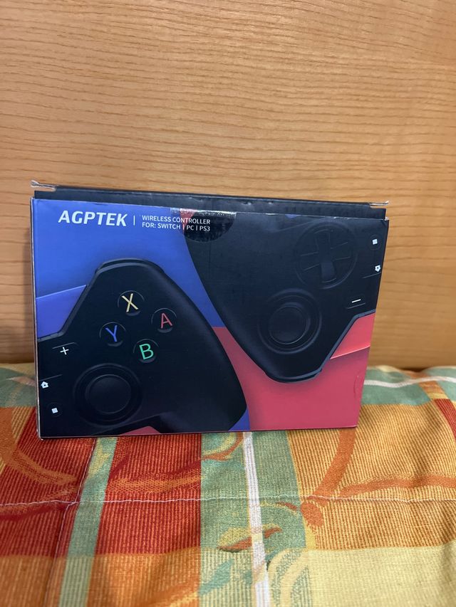 Detalles del productoMando inalámbrico AGPTEK, nuevo, para Nintendo Switch y PC. Es negro y azul, con diseño elegante.