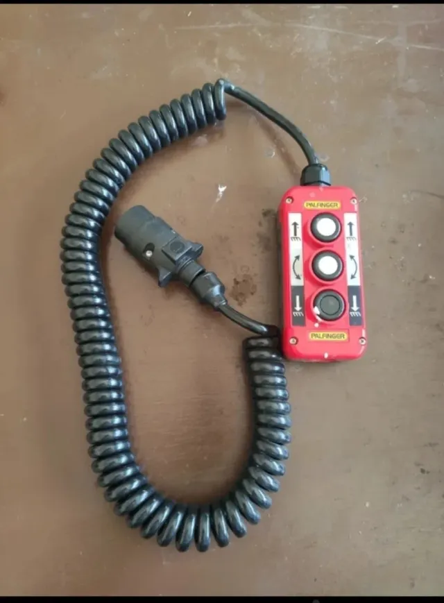Mando a distancia para elevadora Palfinger, en buen estado. Incluye cable espiral. Tres botones de control. Color rojo.