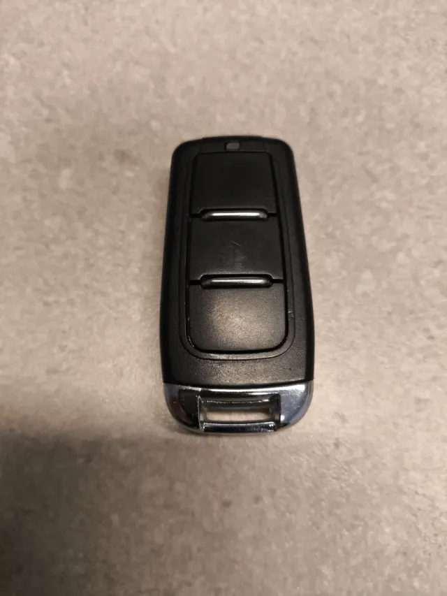 Detalles del productoMando de garaje en color negro con detalles cromados. Control remoto con llavero de tres botones de 01 MHz de Steel-Line genuino DM433.