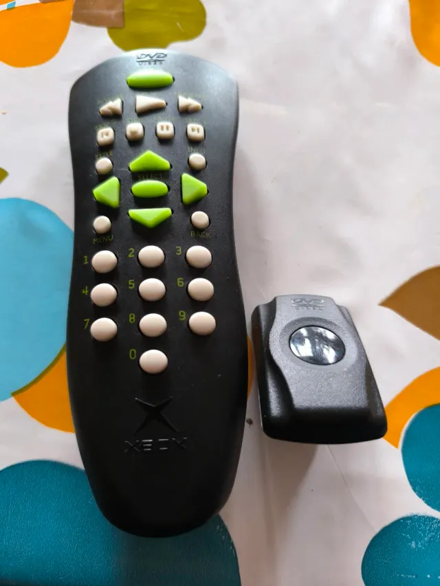 Mando a distancia para Xbox clásica diseñado para la reproducción de DVD, incluye su receptor. - Mando a distancia negro. - Receptor incluido.